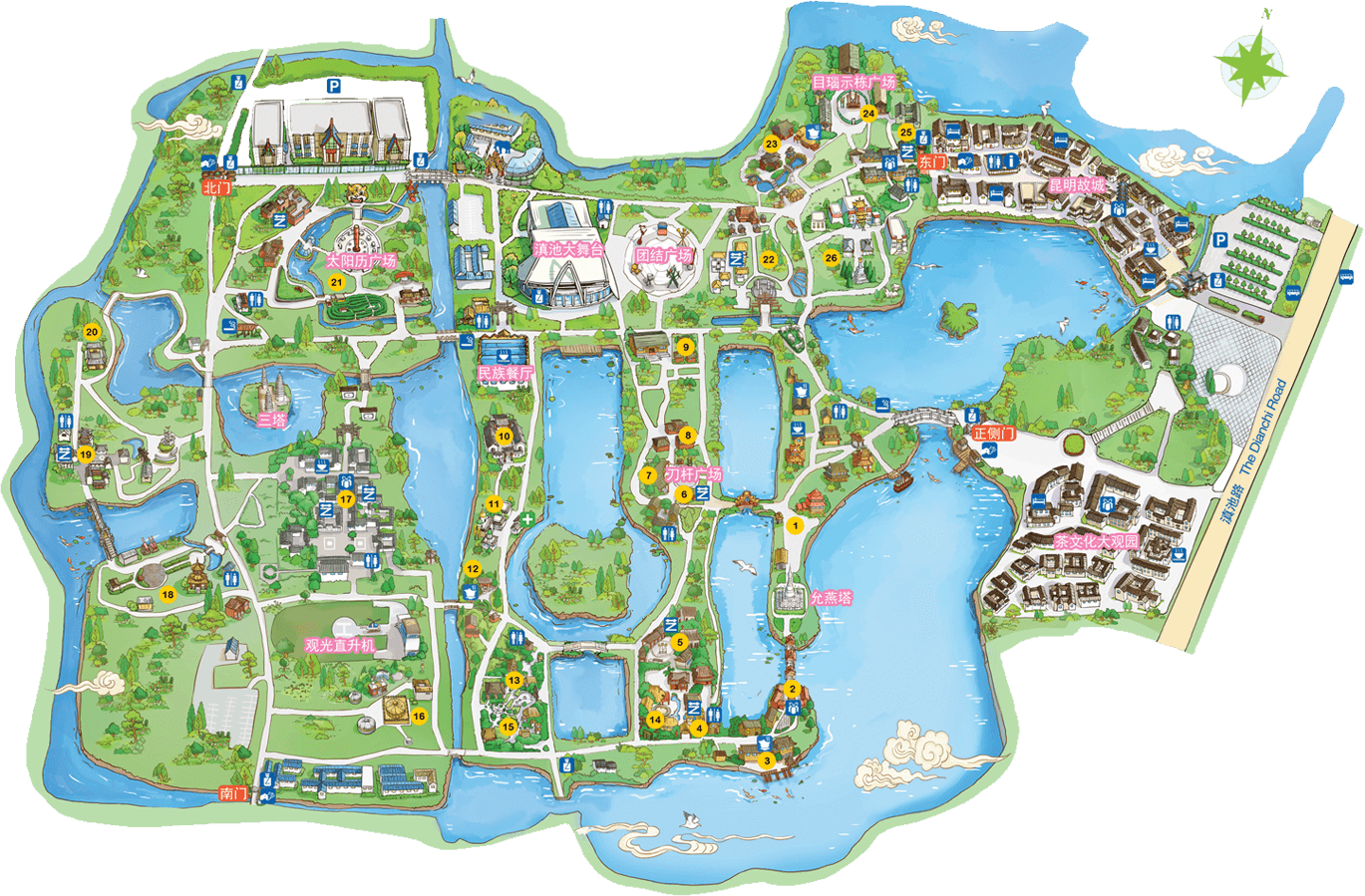 哈尼族是我國西南邊疆歷史悠久的農耕民族,人口約130余萬,主要居住在云南省紅河、元江、瀾滄江流域的無量山區(qū)和哀牢山區(qū)。哈尼寨占地15畝,展現(xiàn)了最具有代表性的蘑菇房和愛尼母子房,日月廣場;有表現(xiàn)哈尼族關于魚生萬物傳說的大型浮雕,有表現(xiàn)哈尼族遷徙傳說的圖騰柱;有體現(xiàn)生產(chǎn)生活的磨房、龍巴門、秋千場、梯田;寨神樹和祭石表現(xiàn)了哈尼族“萬物有靈、多神崇拜”的宗教信仰。哈尼傳統(tǒng)的節(jié)日有“年首扎勒特”、“苦扎扎”...