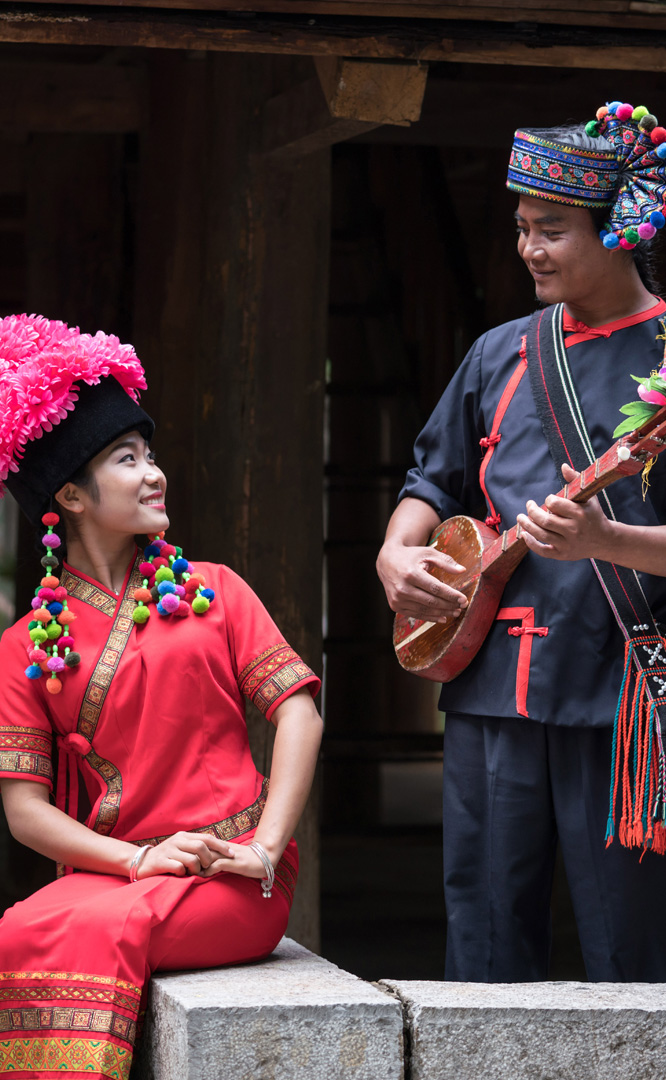 云南的布依族人口近5.5萬人,主要聚居于曲靖、文山、紅河幾個州、市的10余個縣境內,其族源歸為古代“百越”,曾有過“謝蠻”、“仲家”等稱代,是百越族系中駱越人的一支。農耕民族,以農歷紀年,物產(chǎn)豐富,自然條件較好;有語言,通行漢文,文學興盛,歌舞升平,民間信奉“萬物有靈、多神主宰”的原始宗教,代表節(jié)慶為祭社神節(jié)(六月初六)。布依族寨子傍水而建,兩幢民居忠于民間的構建方式,實現(xiàn)了邛籠系與板屋系建筑手法...